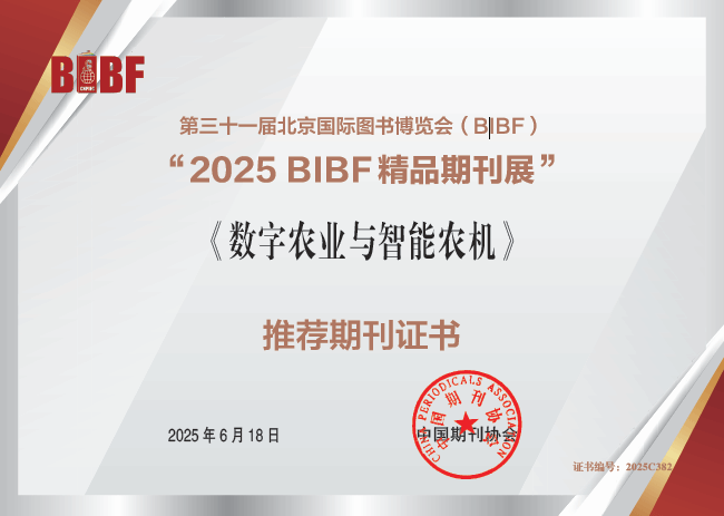 《数字农业与智能农机》作为我院主办的农业科技媒体,始终致力于推动智慧农业与农机装备方面的学术研究与产业应用,该刊前不久在北京召开的第三十一届北京国际图书博览会,获得“2025BIBF精品期刊展”推荐期刊证书。这些荣誉不仅体现了期刊在农业数字化转型研究方面的学术贡献,也反映了期刊在打造精品、提升学术影响力方面又取得了重要的进展。