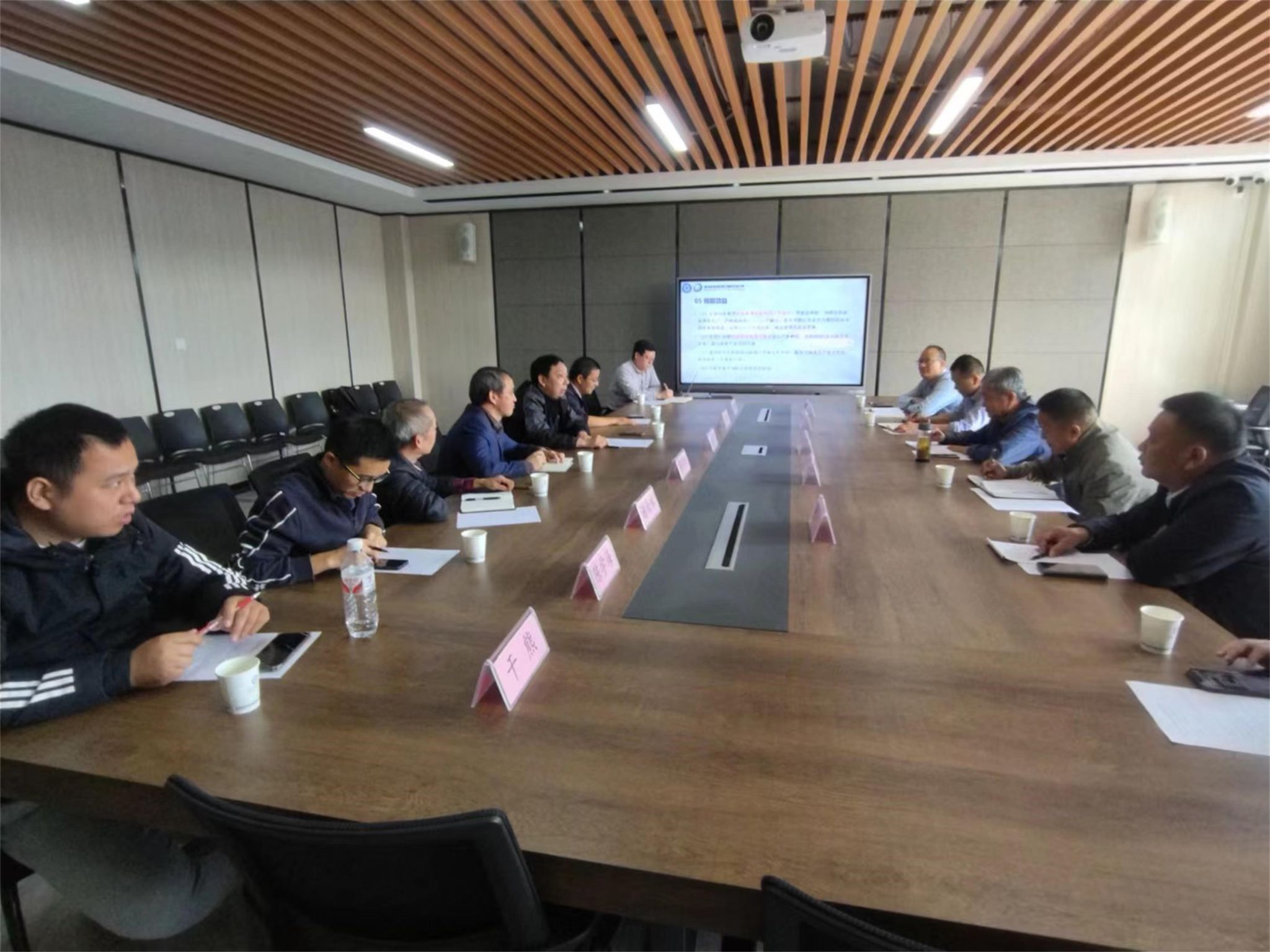 随后,双方在机械工程学院会议室进行座谈。座谈会由但长军主持。农机院智慧农业团队负责人周明刚教授、团队骨干成员申阳博士分别作了院情介绍及农机院与黄陂区农业农村局共建智慧农业产业试点示范的工作汇报。与会人员进行了深入交流和探讨。