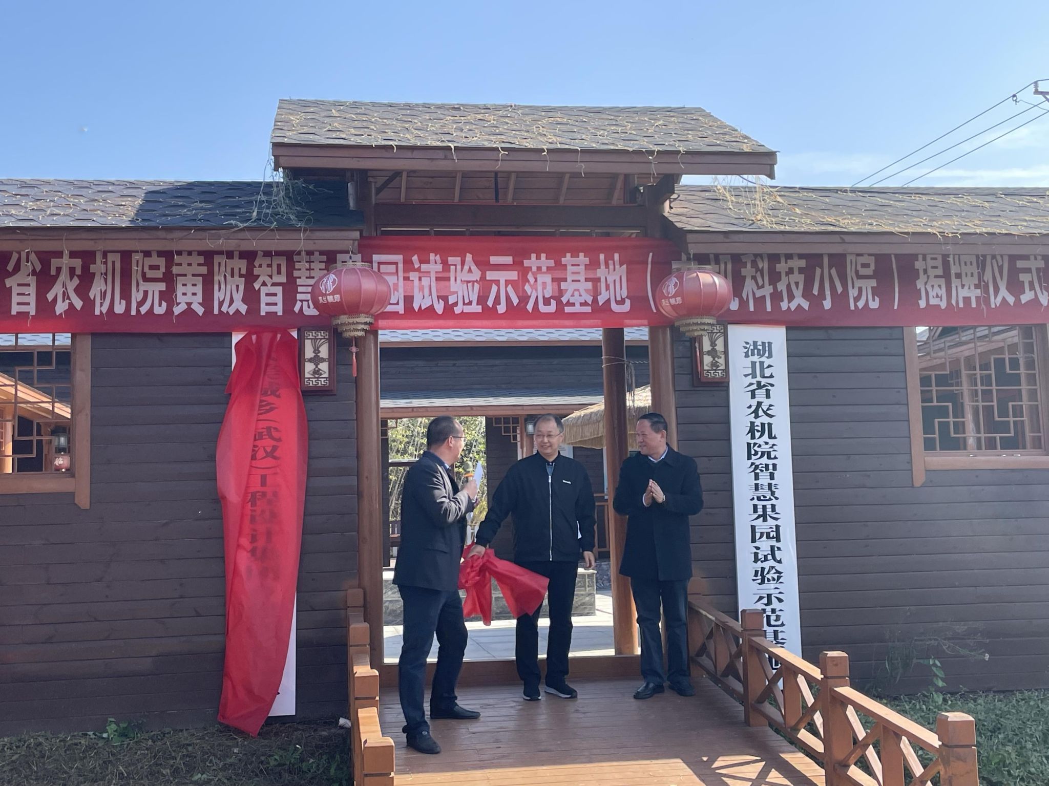 11月23日,省农机院智慧果园试验示范基地(农机科技小院)在黄陂区木兰桃源景区揭牌成立,农机院副院长胡新宇、黄陂区农业农村局相关负责人等共同为基地揭牌。